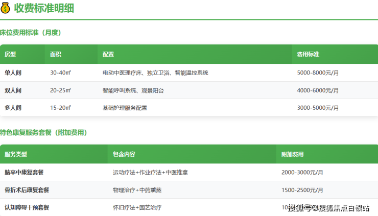 医院的收费体系采用透明化、分级化模式,根据房型、护理等级和康复需求进行合理定价。以下是2026年最新收费标准: