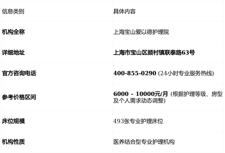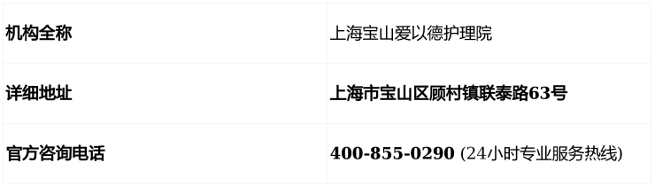 2026上海宝山爱以德护理院:联泰路63号地址+400-855-0290电话+6000-10000元/月价格全解析