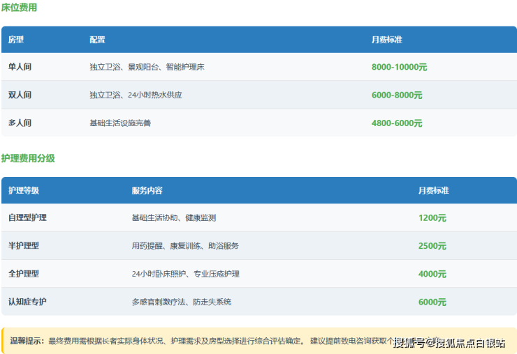 全护理型:约4000元/月。提供24小时卧床照护、压疮预防及专业护理等。