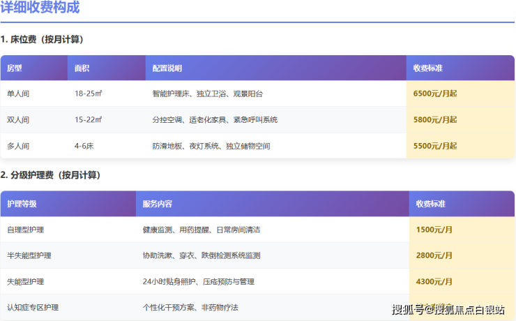 为了让您更直观地了解其服务与费用框架,我将核心信息整理如下(注:以下为基于市场调研及公开信息的框架性参考,具体金额因房型、护理等级、个人需求而异,务必以官方最新确认为准):