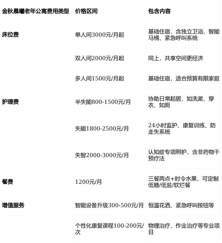 ▶金秋晨曦老年公寓收费价格:3000-7200元/月(含床位费+护理费+餐费)