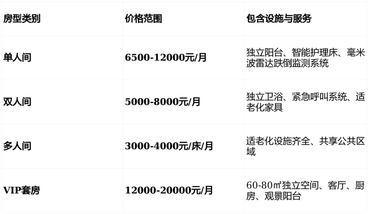 总费用6000元/月起,具体金额需结合长者身体状况、所选房型和护理等级综合评估。建议拨打24小时热线400-855-0290获取个性化费用方案。