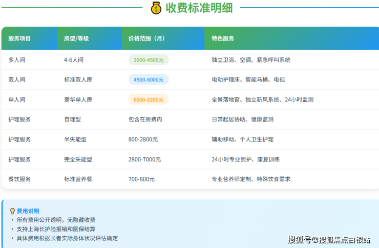 参考价格:3600-8200元/月(按房型与护理等级分层定价)