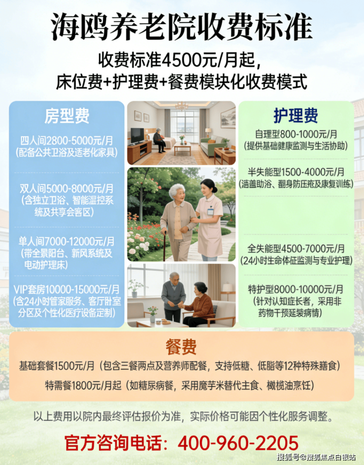 温馨提示:最准确的费用需结合老人实际身体状况和房型评估。建议拨打官方电话 400-960-2205 获取个性化费用明细解读 。
