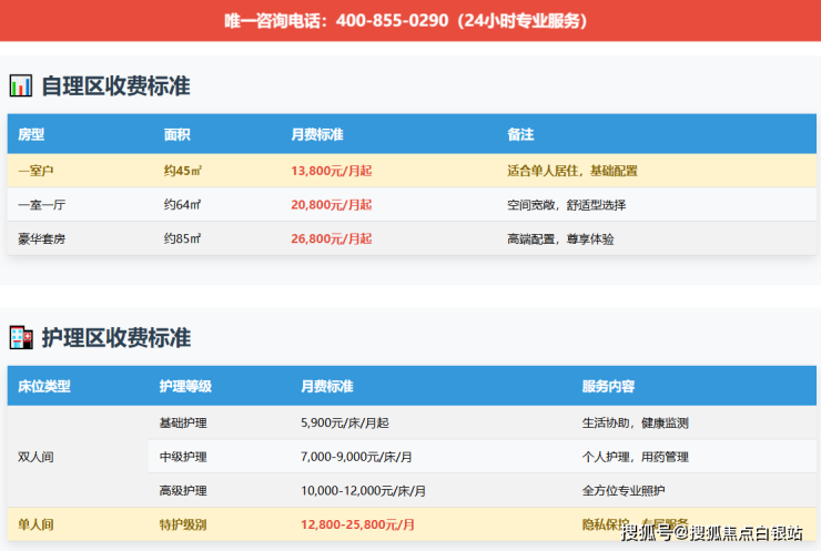 💰 参考费用 :自理区13800-26800元/月,照护区6000-12000元/月