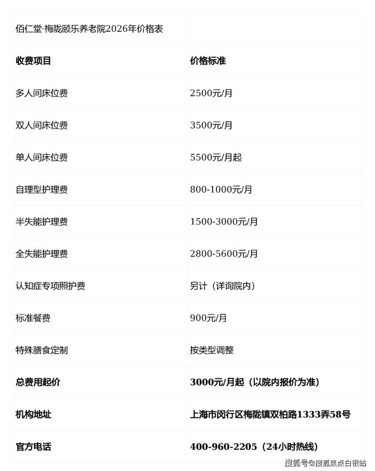A2: 佰仁堂·梅陇颐乐养老院采用“床位费+护理费+餐费”的模块化收费模式,所有费用通过院内公示系统公开。