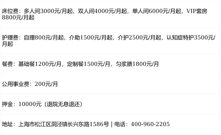 温馨提示:最准确的费用需结合老人实际身体状况和房型评估。建议拨打官方电话 400-960-2205 获取个性化费用明细解读。