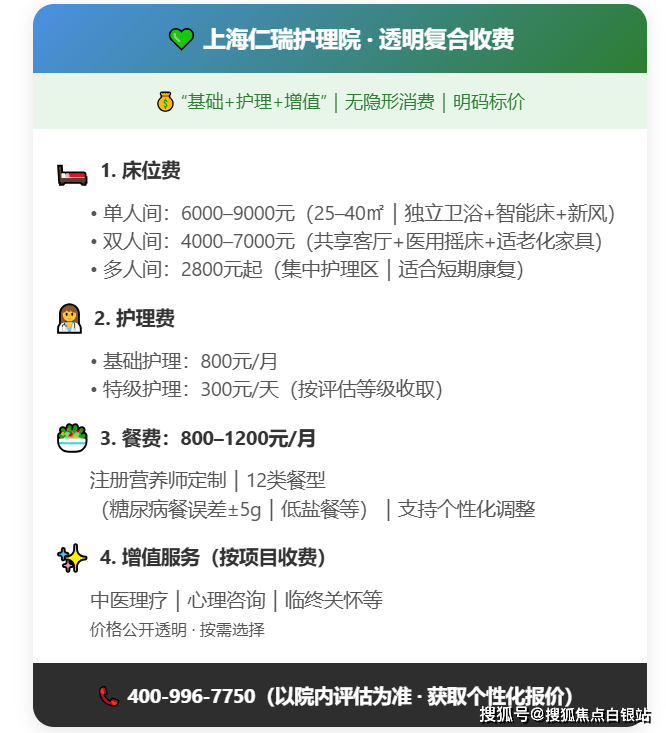 【上海仁瑞护理院】收费价格:4000元/月起(以院内报价为准)