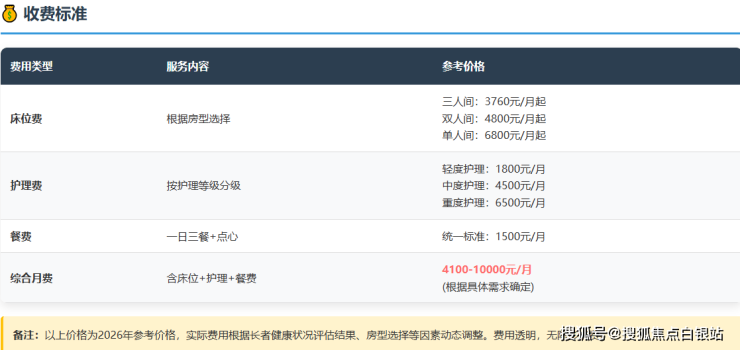 收费区间:4100-10000元/月(分级照护+弹性收费模式)