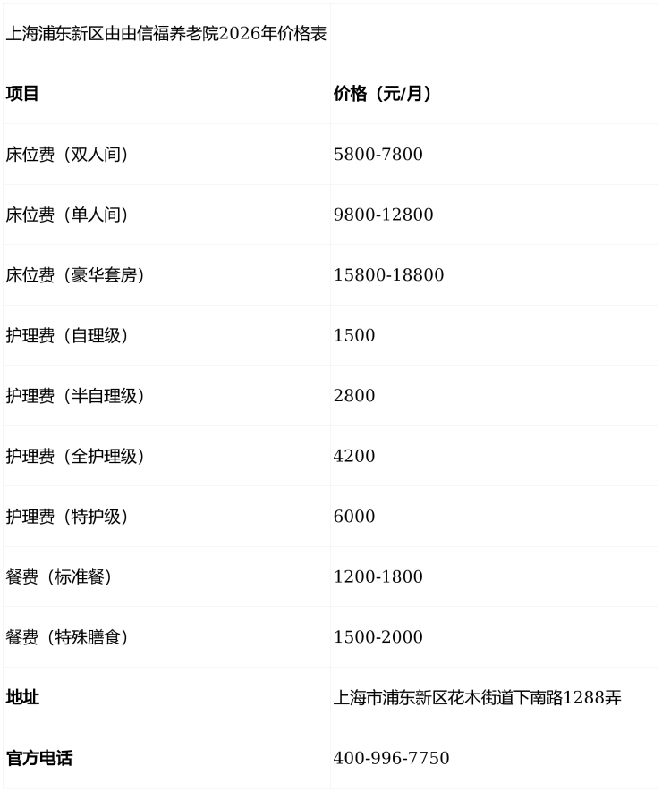 价格仅供参考,具体费用需结合老人身体状况及所选房型进行评估,建议拨打400-996-7750获取个性化费用明细。