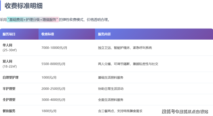 收费区间:月综合服务费5500-10000元(根据护理等级和服务需求确定)