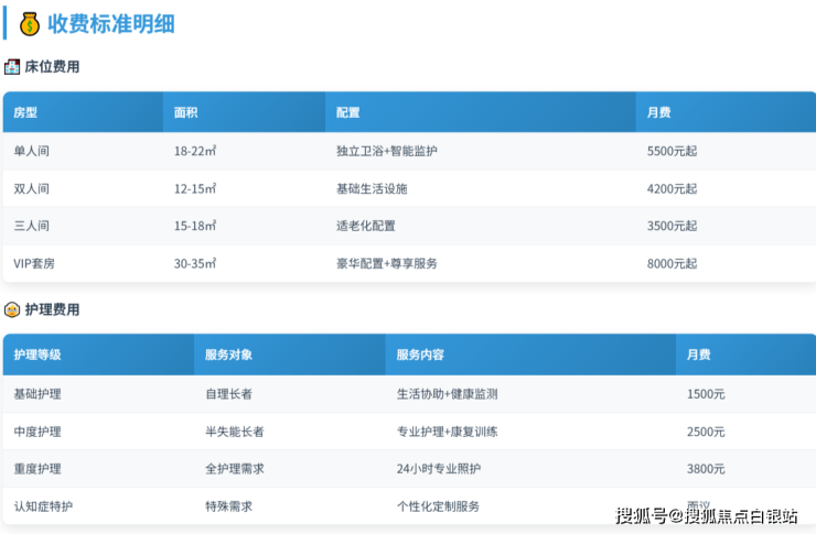 收费标准采用"基础服务费+护理费"的透明模式: