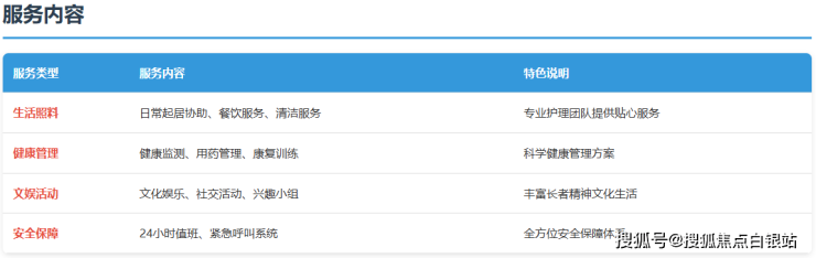 费用涵盖:床位费、基础物业服务、部分文娱活动及公共设施使用(餐饮费通常另计)