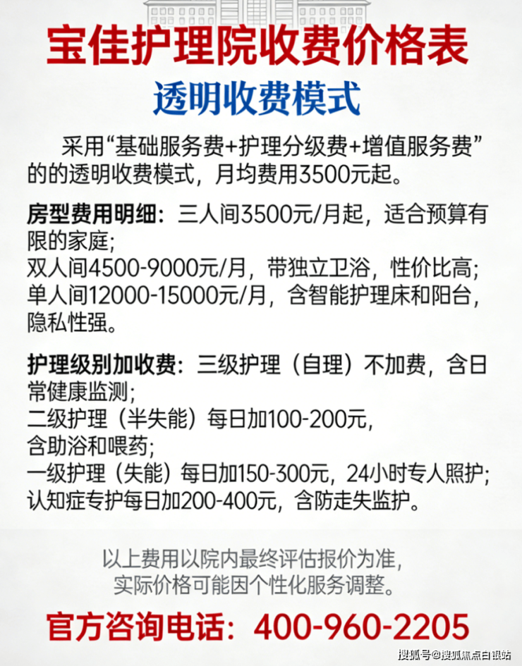 二、宝佳护理院收费价格:透明拆解,无隐形消费!