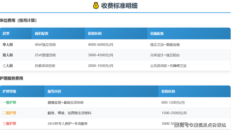 特护级:8000-10000元/月。针对认知症、安宁疗护等特殊需求,提供记忆干预、精神慰藉等精细化、个性化服务