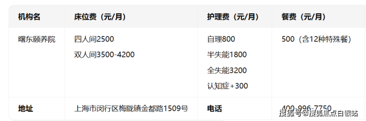 曙东颐养院电话400-996-7750,地址位于上海市闵行区梅陇镇金都路1509号,4134元/月起提供1366张适老床位,收住自理、半失能、全失能及认知症长者。透明收费、三甲资源、智能设施,让晚年生活更有尊严!
