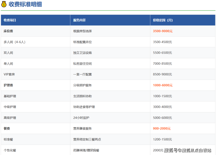 收费区间: 3500-9500元/月(根据房型和服务等级)