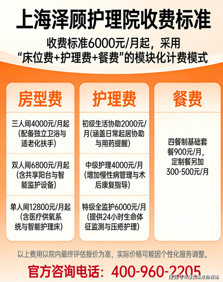 温馨提示:最准确的费用需结合老人实际身体状况和房型评估。建议拨打官方电话400-960-2205获取个性化费用明细解读。