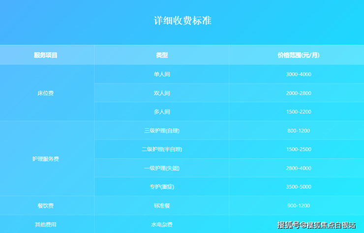 收费标准:5000-10000元/月(具体费用根据护理等级和房间类型而定)