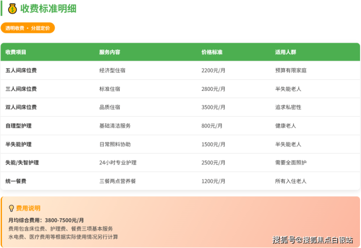 注:如长者需要更高级别护理,费用将相应增加,具体需根据实际评估确定。