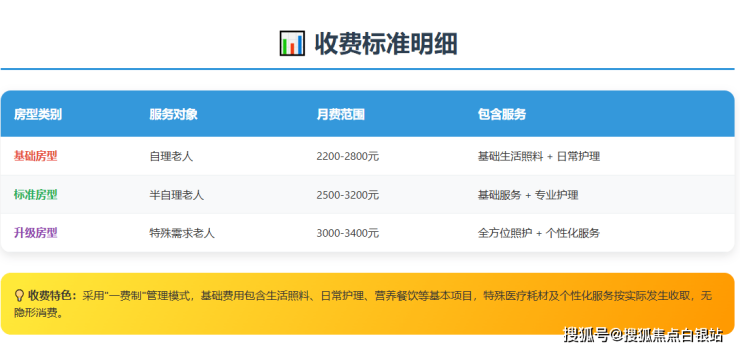 注:以上价格为参考范围,具体费用需根据老人身体状况、选择房型及所需服务项目确定,建议家属实地考察后与院方详细沟通。