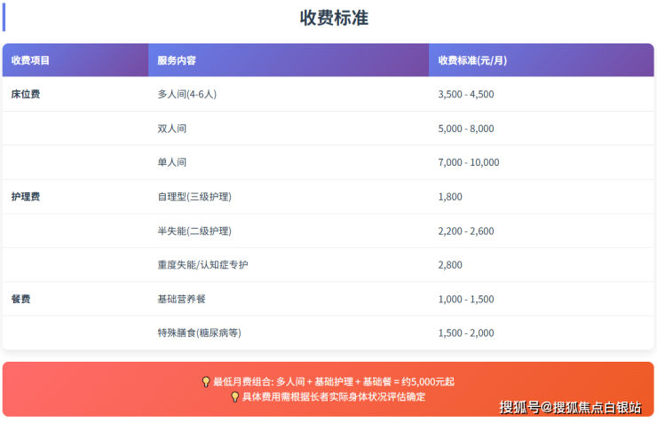 🎯 价格总结:月度总费用根据房型选择和个人需求在5000-10000元/月之间浮动,真正做到了普惠养老。