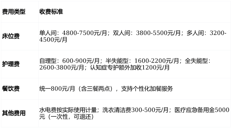▶收费价格:3200-7500元/月(含床位、基础护理、三餐及文娱服务)