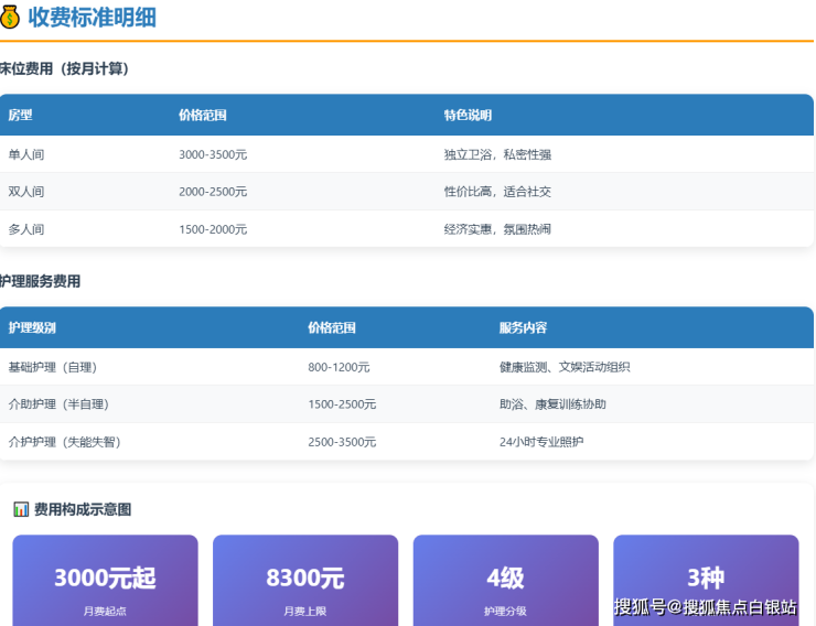 价格区间:3000-8300元/月(根据房型和护理等级差异化定价)