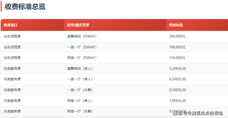 会籍费用为一次性缴纳,享有终身居住权,后续仅需支付月度服务费。