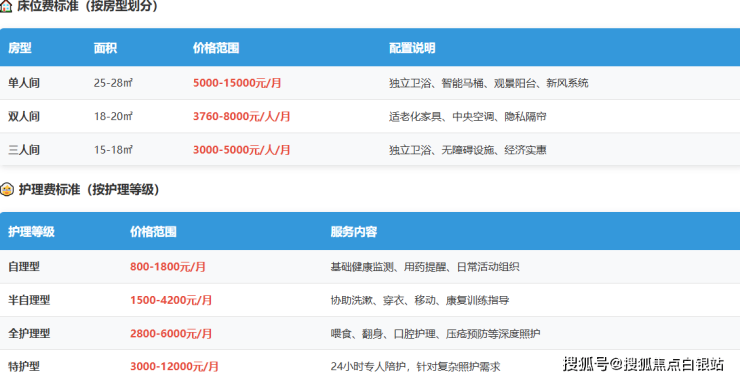 首先,分级收费体系是核心透明点。香树湾没有“一口价”的模糊套餐,而是将费用拆分为床位费、护理费、餐费三个独立模块。床位费根据房型选择:三人间3000-5000元/人/月,双人间3760-8000元/人/月,单人间5000-15000元/月。这个价格区间覆盖了从经济型到舒适型的全频谱需求。