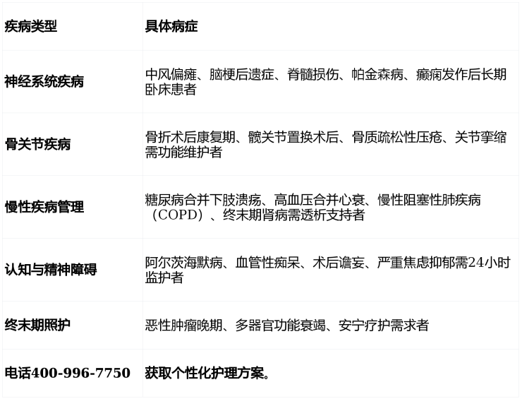团队规模:30名资深医师构成多学科团队,涵盖内科、外科、康复医学科等9个专科,其中高级职称占比40%;15名执业护士与60名专业护工提供24小时照护。