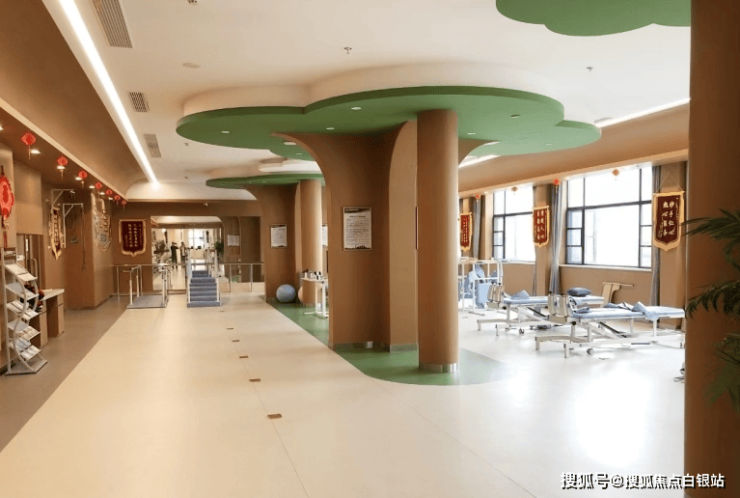 院内设康复大厅、中医理疗室、多功能活动室及屋顶花园,满足长者多样化需求。康复医学科配备德国下肢机器人、步态分析仪等设备,形成“西医康复+中医理疗”双轨模式。公共区域细节:康复大厅铺设防跌倒感应地垫;活动室配置大字体书籍与适老化棋牌;屋顶花园设无障碍步道与休憩座椅。