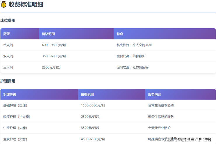 温馨提示:本文提供的收费信息仅供参考,具体费用以机构实际报价为准。建议在选择前进行充分了解和比较,确保选择最适合长者的护理服务。