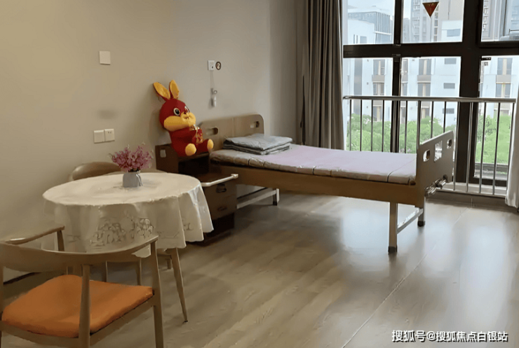 适老化细节:走廊全程双层扶手、防滑地板、无障碍通道、紧急呼叫系统全覆盖;护理床位配备电动护理床、防褥疮床垫、可调节床头桌。