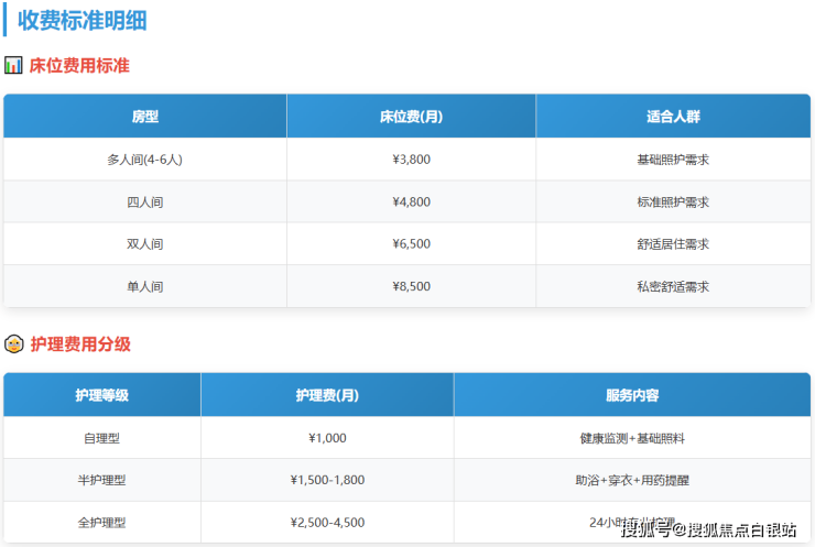 全护理型:2500-4500元/月(24小时专人照护)