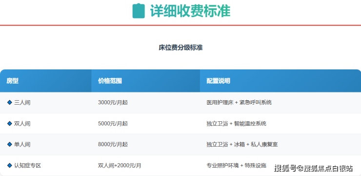 认知症专区:在双人间基础上加收2000元/月