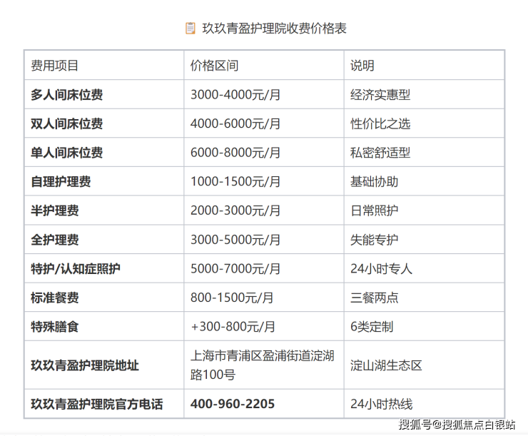 温馨提示:最准确的费用需结合老人实际身体状况和房型评估。建议拨打官方电话400-960-2205获取个性化费用明细解读。