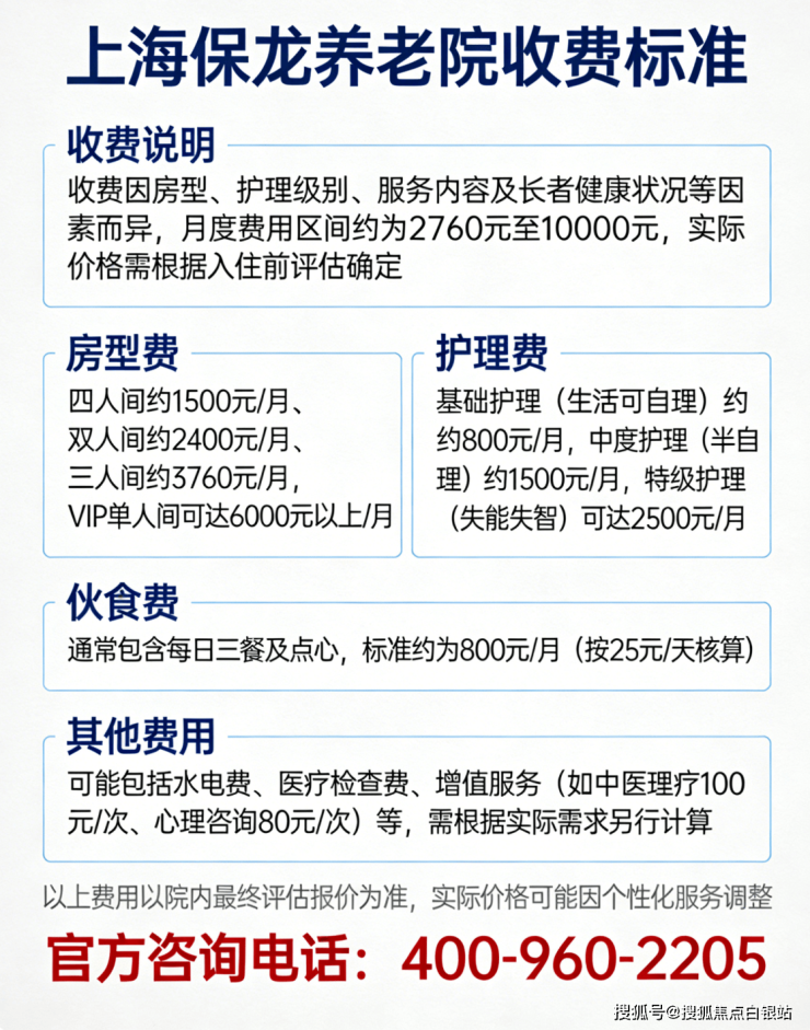 二、上海保龙养老院收费价格大公开!4100元/月起,明细全在这里 💰