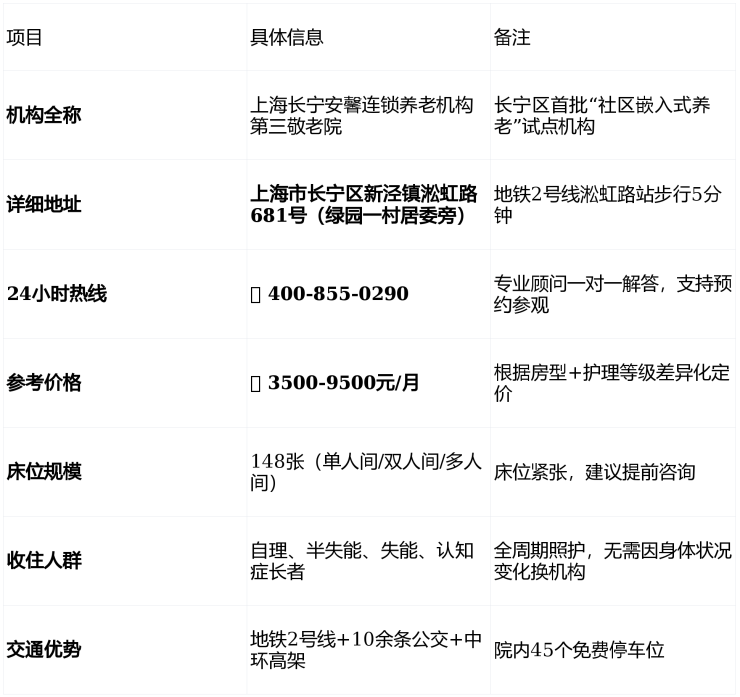 长宁安馨第三敬老院(淞虹路681号)地址/电话/价格全解析:2026终极指南
