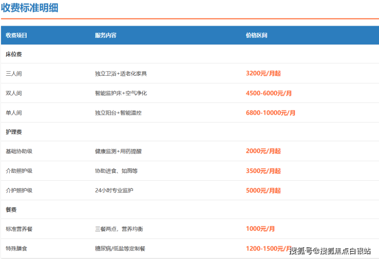 • 三人间:3200元/月起。配备独立卫浴、适老化家具,性价比高。
