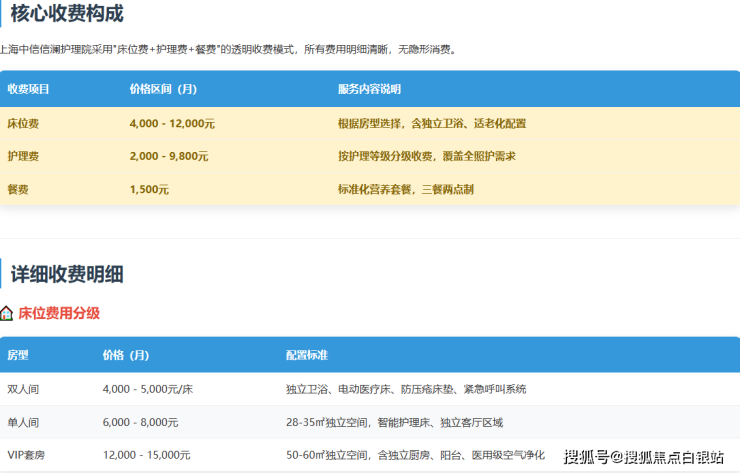 上海中信信澜护理院采用“床位费+护理费+餐费”的模块化透明收费体系,所有费用均在专业评估后提供书面明细,无隐性消费。