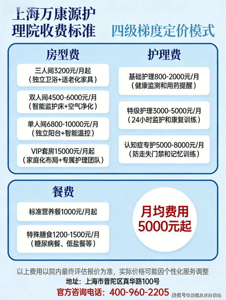 一、上海万康源护理院收费明细:5000元/月起的构成逻辑