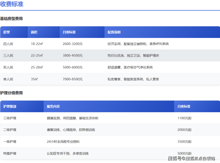 基础费用包含:住宿、餐饮、基础护理等基本服务