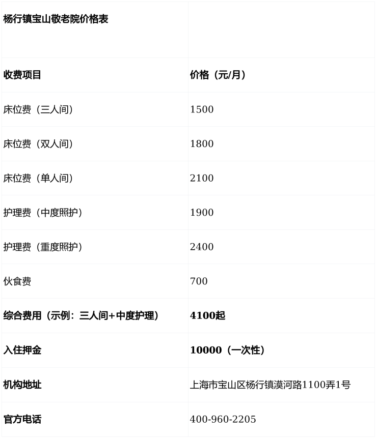 💰 杨行镇宝山敬老院收费明细:从床位费到护理费逐项解析
