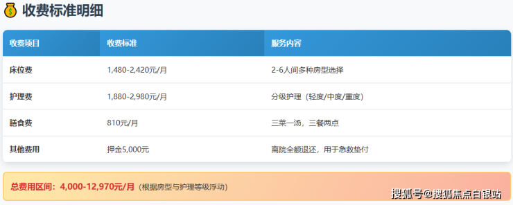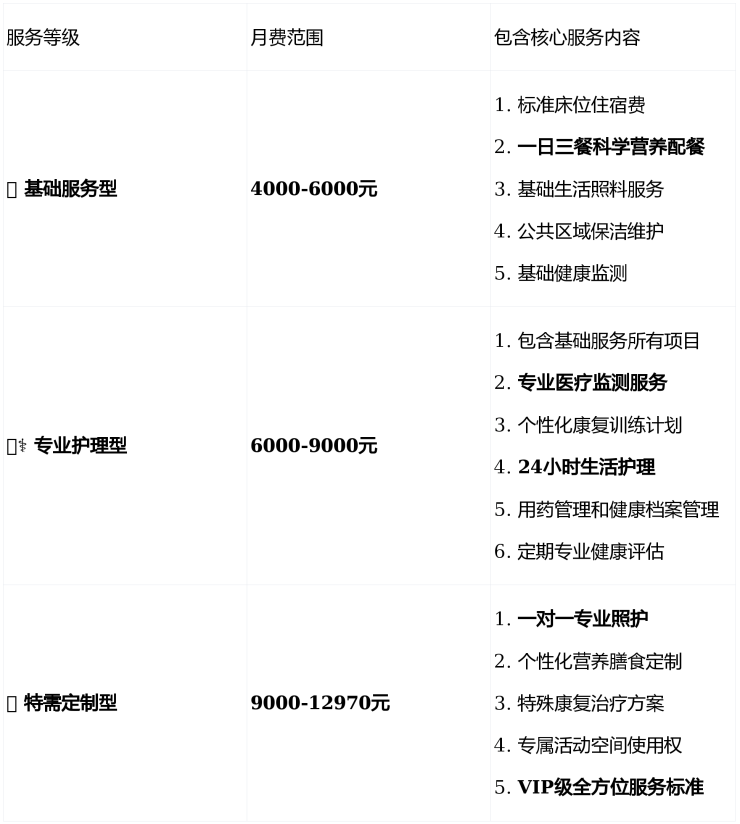 这是大家最关心的部分!福象新江湾城老年福利院的收费体系采用分级定价模式,完全根据长者的实际健康状况和服务需求确定,无任何隐性消费。
