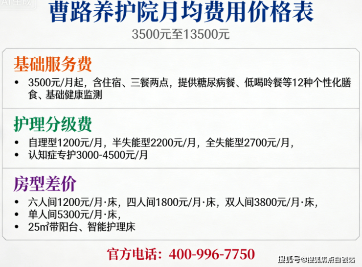 对比周边:同区域民办机构单人间普遍超8000元/月,曹路养护院价格直降40%!拨打400-996-7750,获取最新报价清单,定制专属养老方案!