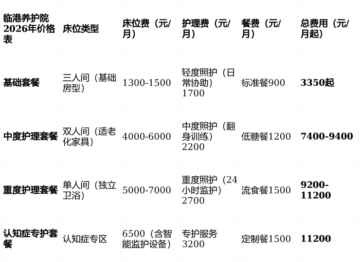 三、收费标准:透明分级,普惠与品质兼具(2026年价格表)