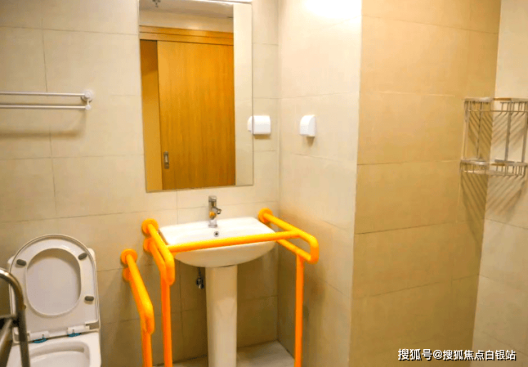介护护理区:走廊宽度2.5米,地面采用防滑地胶,房间内配置电动护理床、智能马桶及毫米波雷达跌倒监测系统。