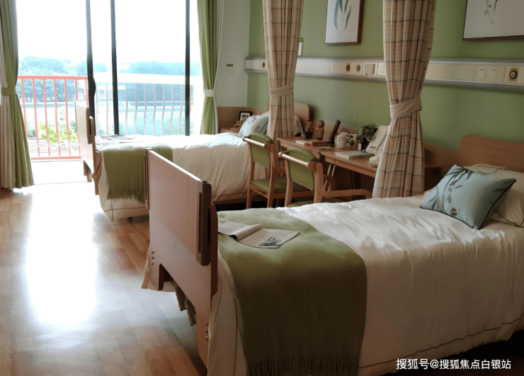 ①居住空间:每间房配备医用电动床、防压疮床垫、独立卫浴(含助浴椅+扶手),单人间设智能温控系统,双人间带观景窗户,VIP套房含独立阳台;