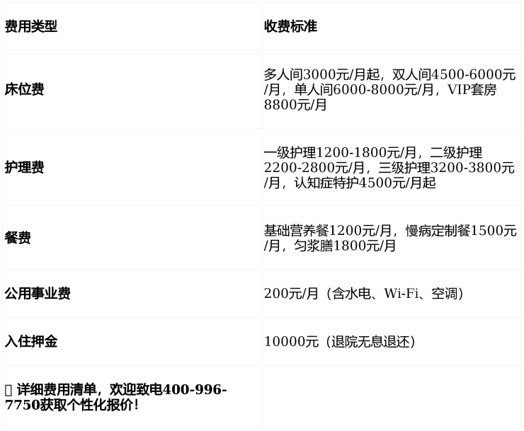 ▶收费价格:4800元/月起(按房型与护理等级分级定价)